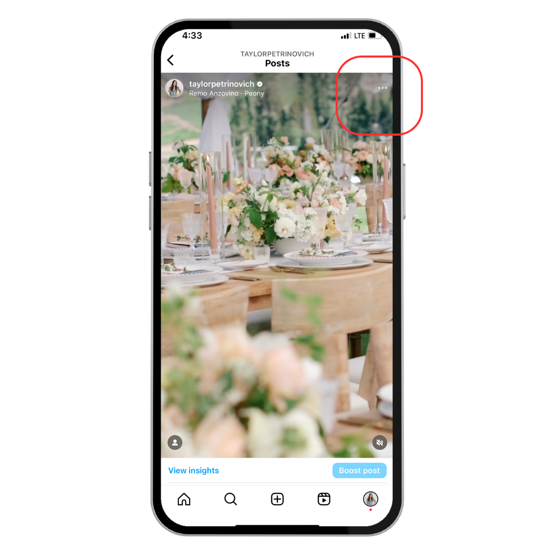 To pin a post or a reel to the top of your Instagram grid, first click the post you want to pin, then tap on the three dots in the top right corner.